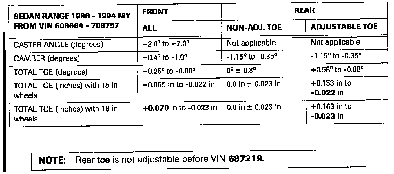 ^ Sedan Range - 1988-1994 MY Alignment Specifications