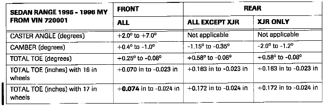 *Vehicle alignment specifications* - XJR-S - All