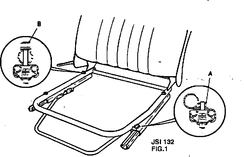 8. Insert 5/16" X 11/2" U.N.F. hexagon head bolt through runner into seat frame, and secure using plain washer and nyloc nuts. ("B" Fig. 1)