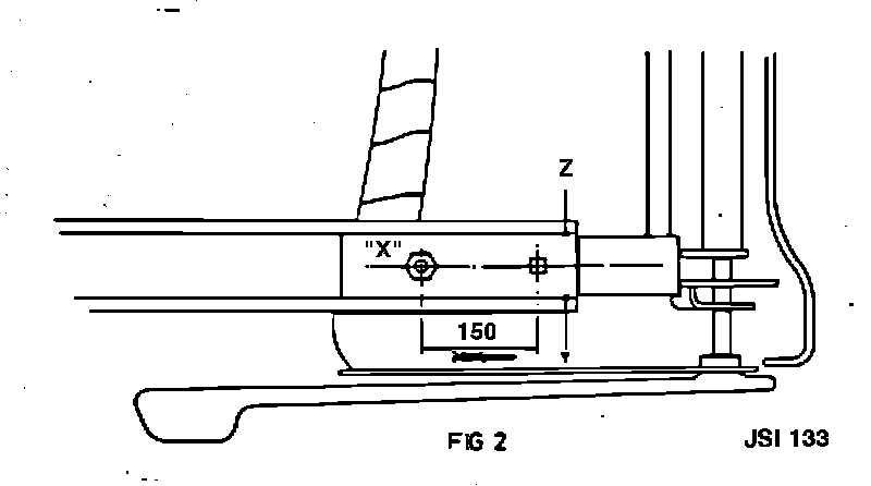 NOTE: It is essential that the holes are drilled exactly central between point Y and Z on Fig. 2. Failure to do so will cause bolt head X to foul the seat runners. Bolt head is shown in exact position to avoid fouling runners.