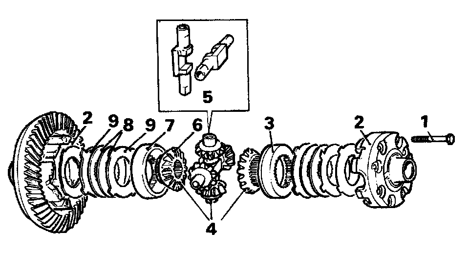 Remove differential side ring (3, Fig.37). Remove pinion side gear and pinion cross-shafts complete with gears (4, Fig.37). Separate cross-shafts (5, Fig. 37).