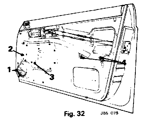 - Remove the door speaker (1, Fig. 32).