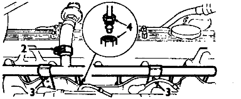 4. Loosen manifold to cylinder head union nuts (4), and remove air manifold. Reinstall in reverse order of removal.
