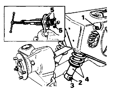 - Remove washers and nuts securing hydraulic dampers to wishbone.