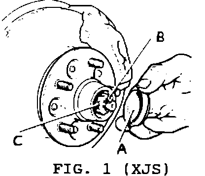 Fig. 1 shows an XJS front hub and Fig. 2 shows a Sedan front hub. All procedures apply to both models.