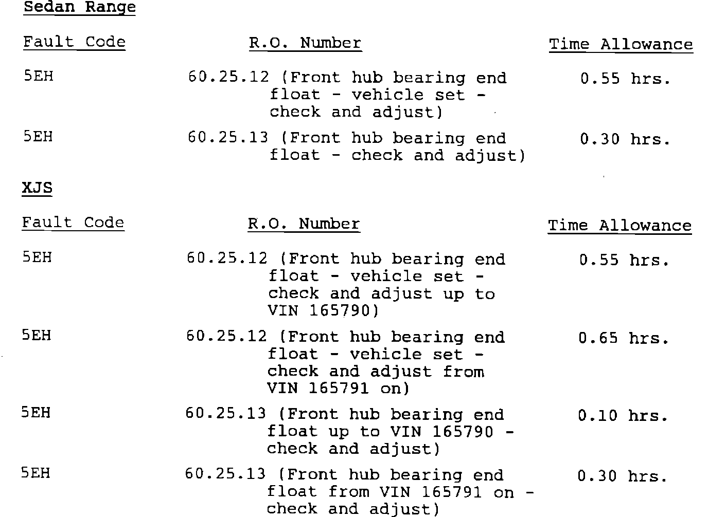 Front hub end float specification change.