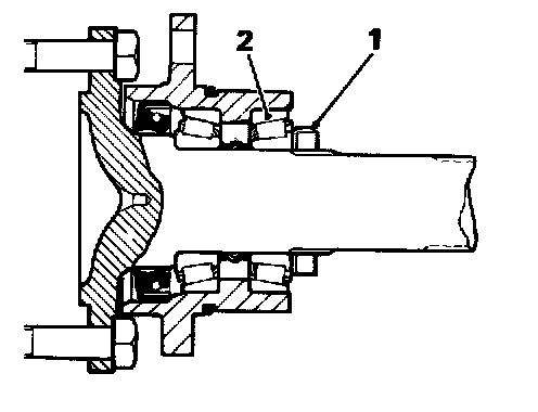 Further tighten nut, very slightly (not more than a thirty-second of a turn about 5 mm (3/16 In) at perimeter of nut) and re-check torque required to turn shaft. Continue to tighten nut in very small increments. turning shaft to seat bearings and measuring torque after each increment, until correct figure is reached.