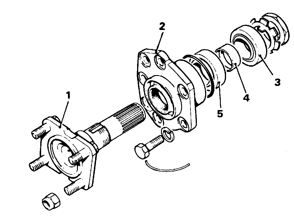 Check that four special bolts for brake disc are in position in output shaft flange and enter shaft through seal and outer bearing.
