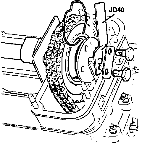 - Remove JD 40 from the LH camshaft sprocket and check the alignment of the sprocket retaining bolt holes.