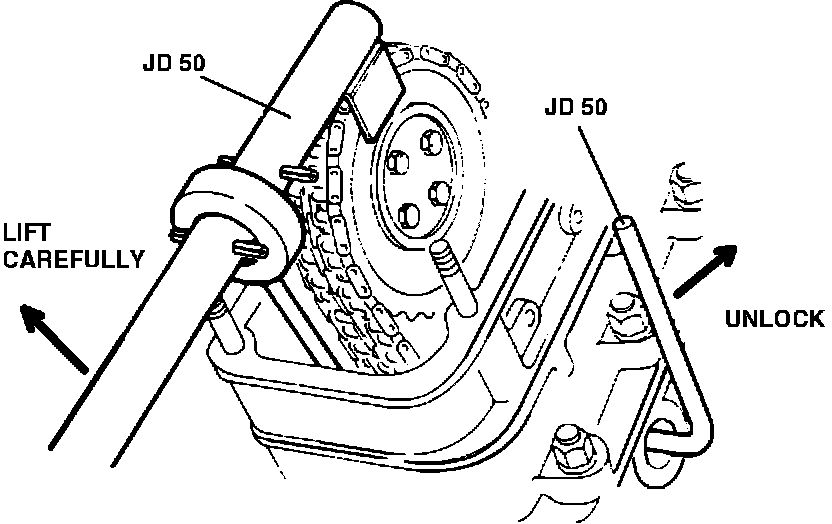 - Fit JD 50 (Chain Tension Retainer) and raise the timing chain tensioner slightly.