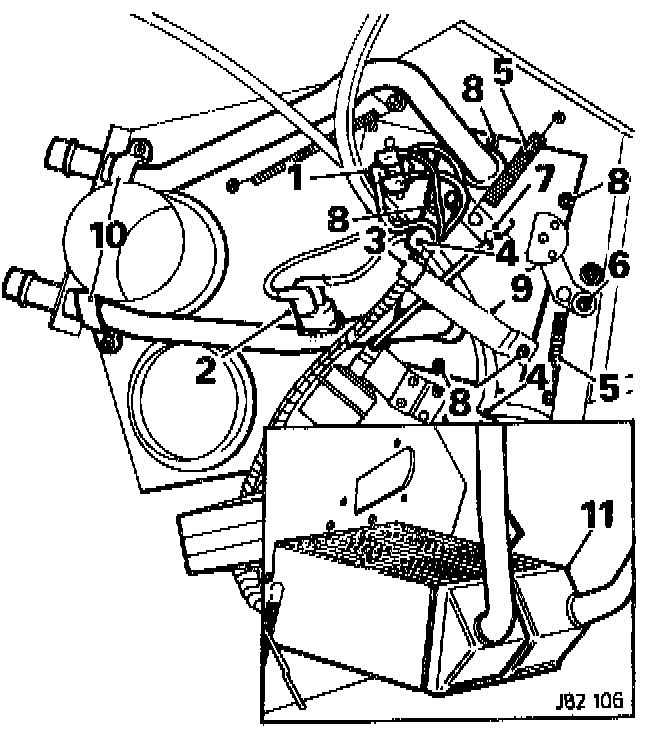 - Slacken the screw securing the operating rod from the vacuum servo to the flap operating lever on the matrix cover (7) and release the lever from the rod.