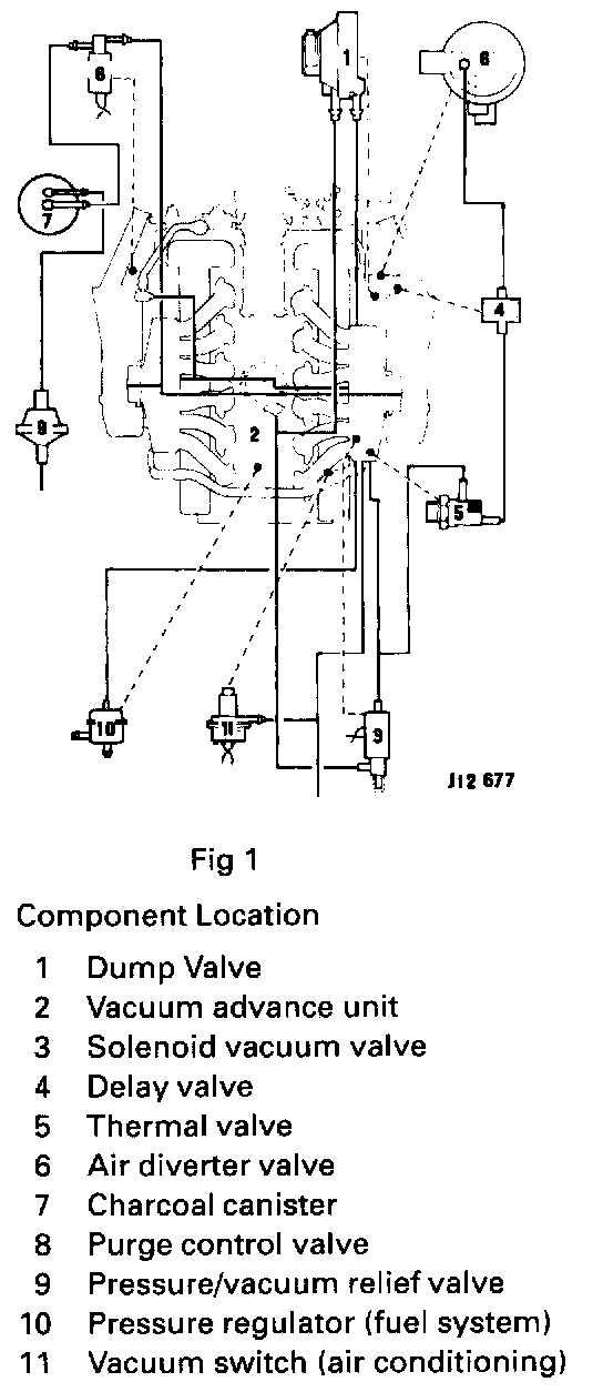 Secondary air is supplied to the exhaust ports only during the engine warm up phase. When the engine coolant temperature reaches a pre-determined level, delivery of secondary air is switched from the exhaust ports to atmosphere. This function is achieved by means of a vacuum operated air switching valve, and the vacuum source is controlled by a thermal vacuum valve, located in the right-hand rear coolant outlet rail.