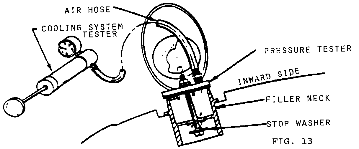 It may be necessary to tilt the pressure test assembly outboard until the stop washer is visible an slide the stop washer through the small filler neck opening (fig. 13).