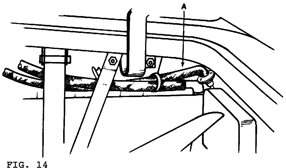 Attach a cooling system pressure tester to the Hess & Eisenhardt adaptor and pump 2 PSI into the fuel system. Observe pressure on tester pressure gauge. If 1-2 PSI is retained for 3 minutes, continue and test. If 1-2 PSI cannot be maintained in the system, the pressure vacuum valve hose should be clamped off at point "A" in fig. 14 to prevent any vapor from escaping to the charcoal canister. After the hose has been clamped off, the system should be pressurized. If pressure refuses to build, the source of the pressure leak should be found using the combustible gas detector.