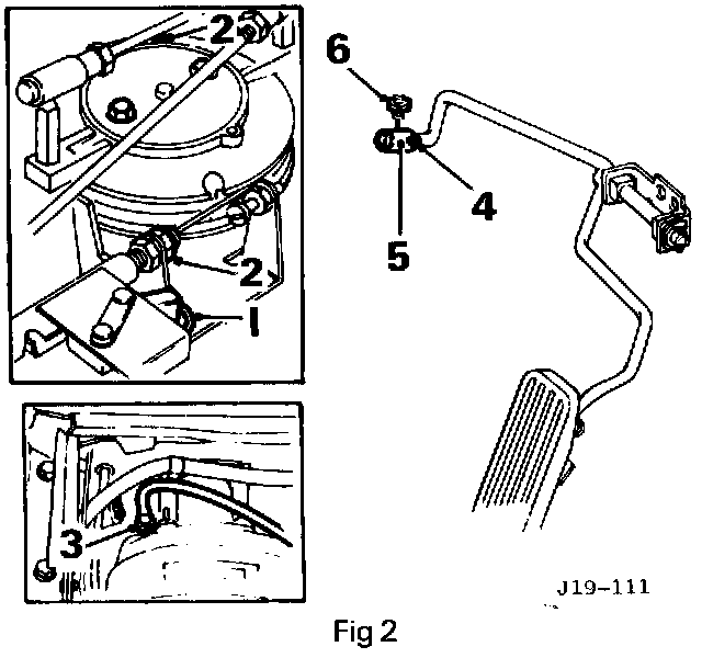 Remove and discard split pin securing throttle cable to throttle pedal, pull off sleeve and release cable from pedal. (4).