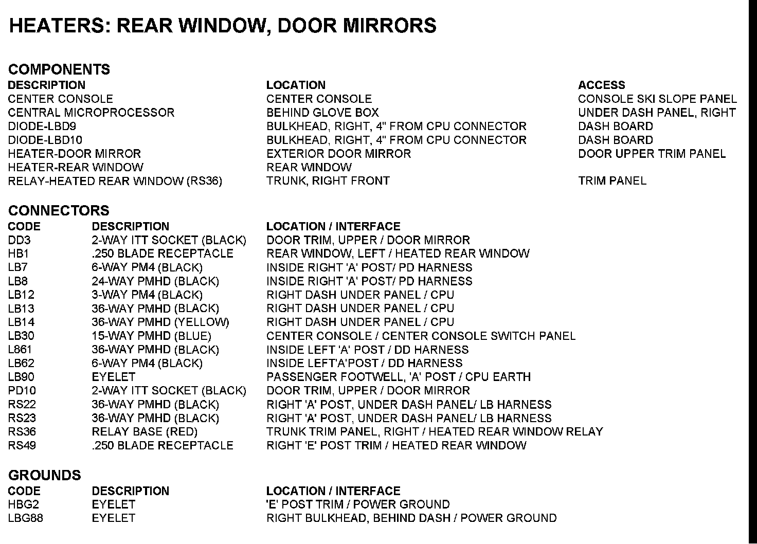 �e�Heaters: Rear Window, Door Mirrors: