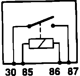 1a. Normally Closed Relay (N/C). This is a green relay (DBC 2483) with one output terminal, 87A. When activated, relay has no output (Fig. 1).