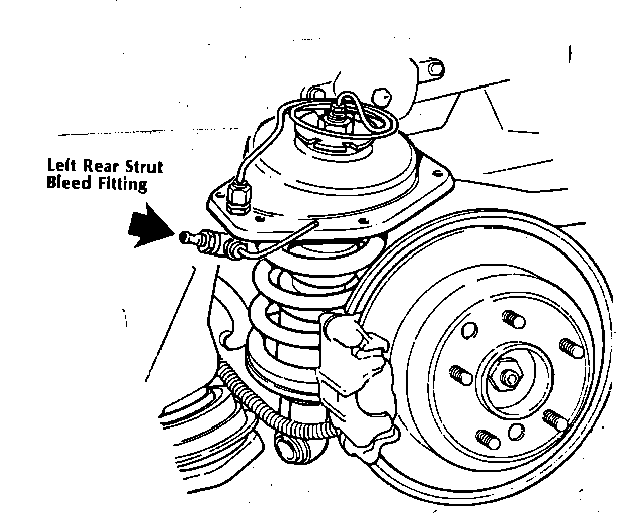 5. Open bleed nipple at top of left hand leveling strut and allow oil to flow into a clear container. (Vehicle will return to normal ride height). Close bleed nipple.