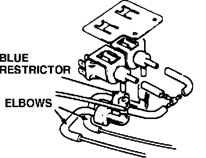 NOTE: Vehicles above VIN 527775 may have had the defrost flap vacuum circuit modified at production. To eliminate defroster flap "creak" the defroster solenoid blue vacuum restrictor Part No. JLM 750 was removed. If such a vehicle exhibits flap "banging", it will be necessary to simply add the blue restrictor, Part No. JLM 750, to the vacuum line, Fig. 1. At the same time the restrictor is added, it will be necessary to lubricate the pivot as detailed above to ensure no flap "creaking" results.