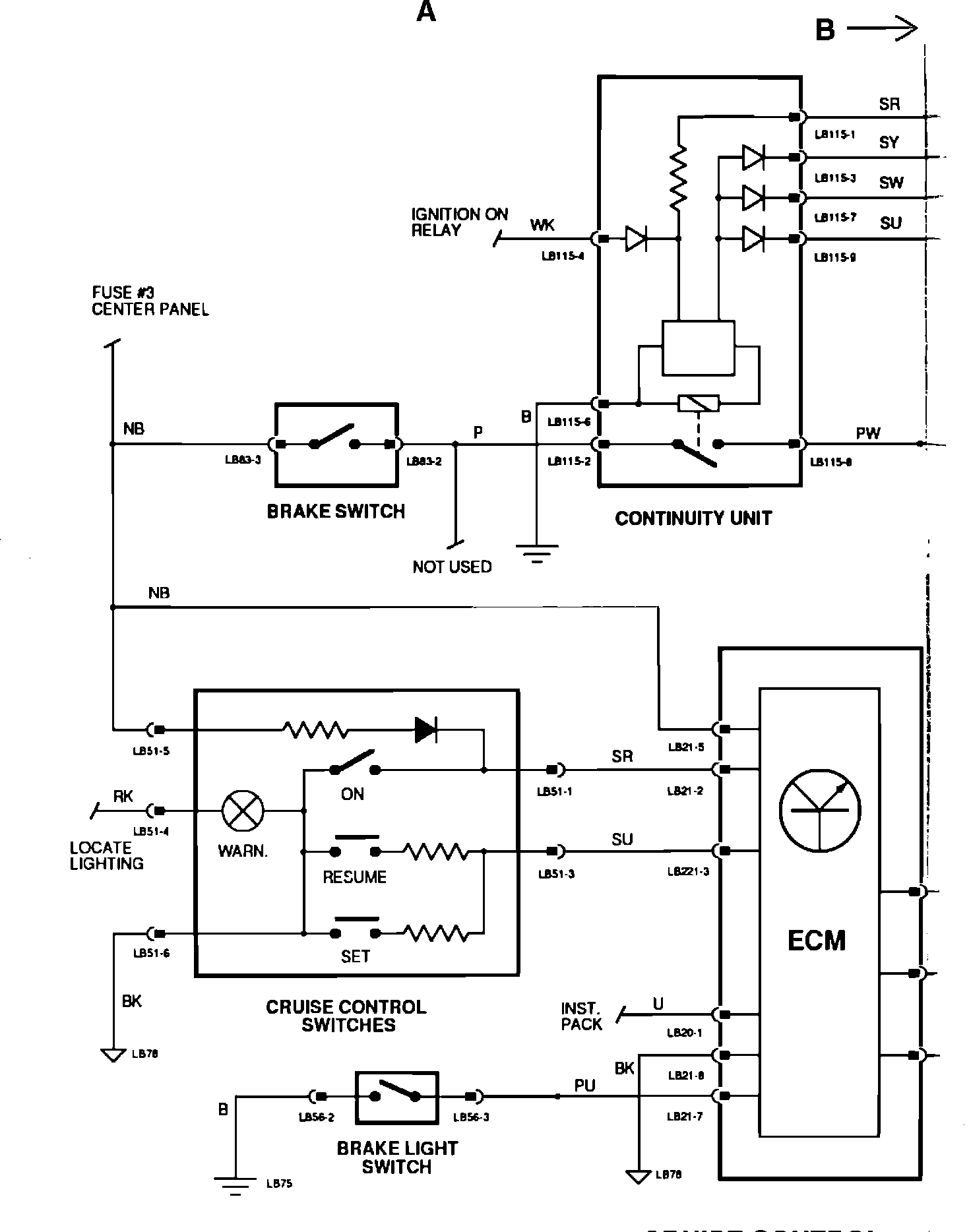 ^ If ground does exist, test LB 115-8 (P/W) for normal battery voltage.