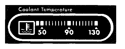 The coolant temperature indicator provides a bar-graph indication of the engine coolant temperature. The gauge is calibrated over a range 50°C to 130°C and is operated, via B53-5, RS22-8 and RS7-2, by a sensor having an electrical resistance which decreases with increasing temperature. The gauge has a red surround which flashes when the temperature becomes critically high.