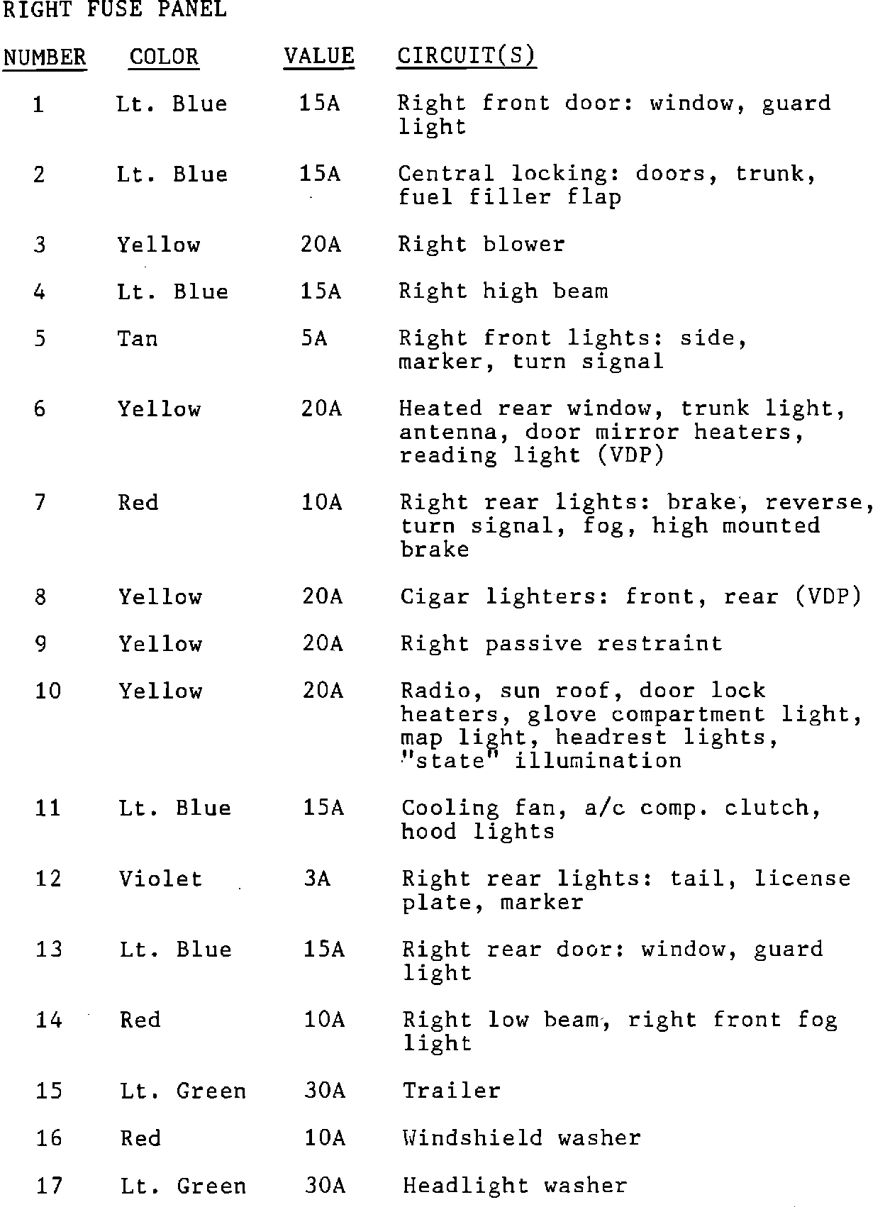 The following fuse chart information is for 1989 M.Y. XJ6 3.6 vehicles: