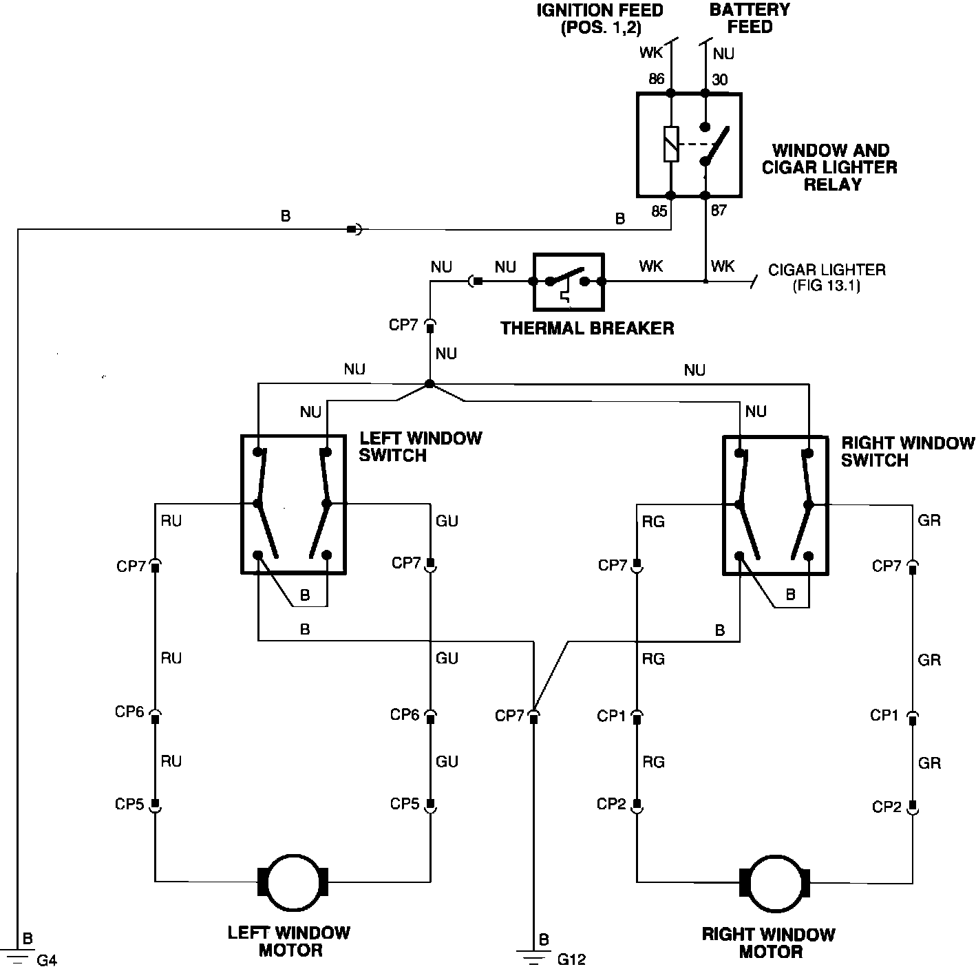 Power Windows (VIN 156989 - On) (FIG 20.2):