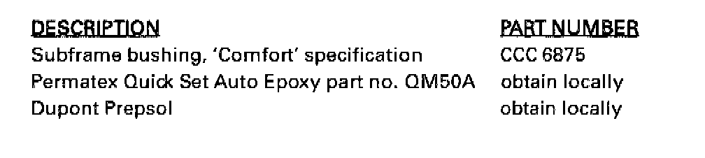 5. Use a coarse grade of emery cloth to roughen the bore surface of the subframe and the corresponding outer surface of the replacement bushing. If the surface of the bushing is not roughened sufficiently this may affect the integrity of the adhesive bond.