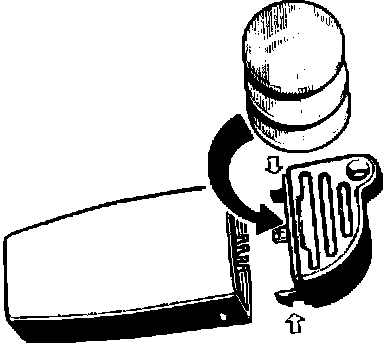 ^ Carefully depress the spring tags through the openings in the case and remove the battery compartment cover from the handset body.