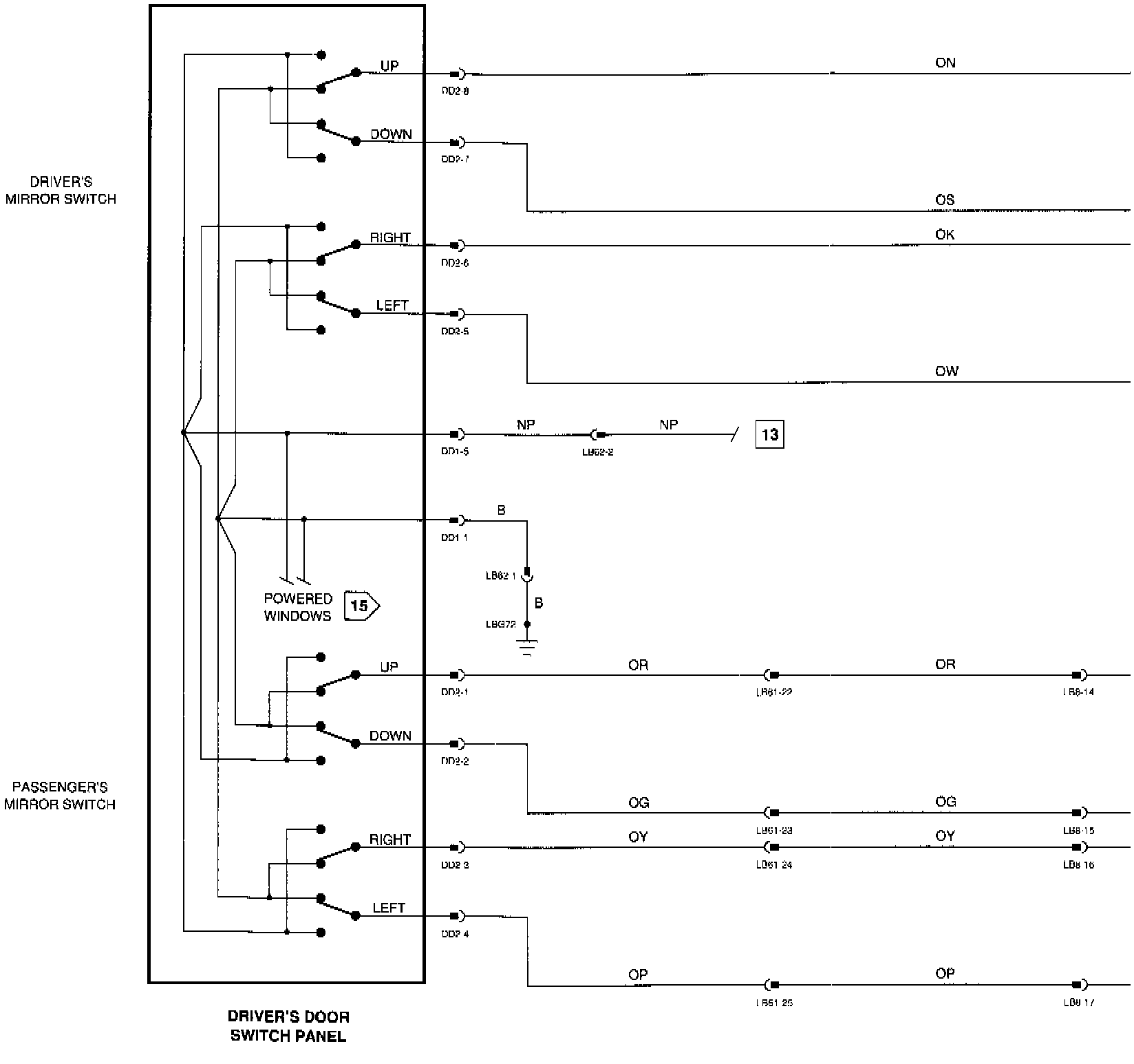 Power Door Mirrors - Components, Connectors, & Grounds: