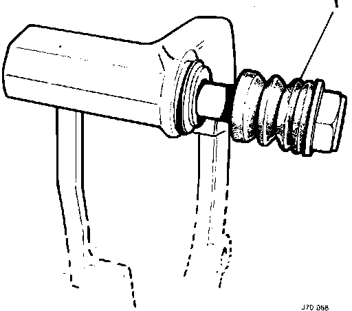 NOTE: Be sure that the dust cover is not trapped between the piston and the bore, and that the inner lip of the dust cover is correctly located in the inner groove in the piston bore.