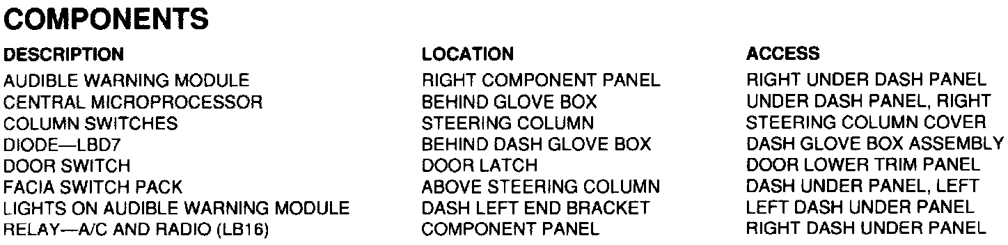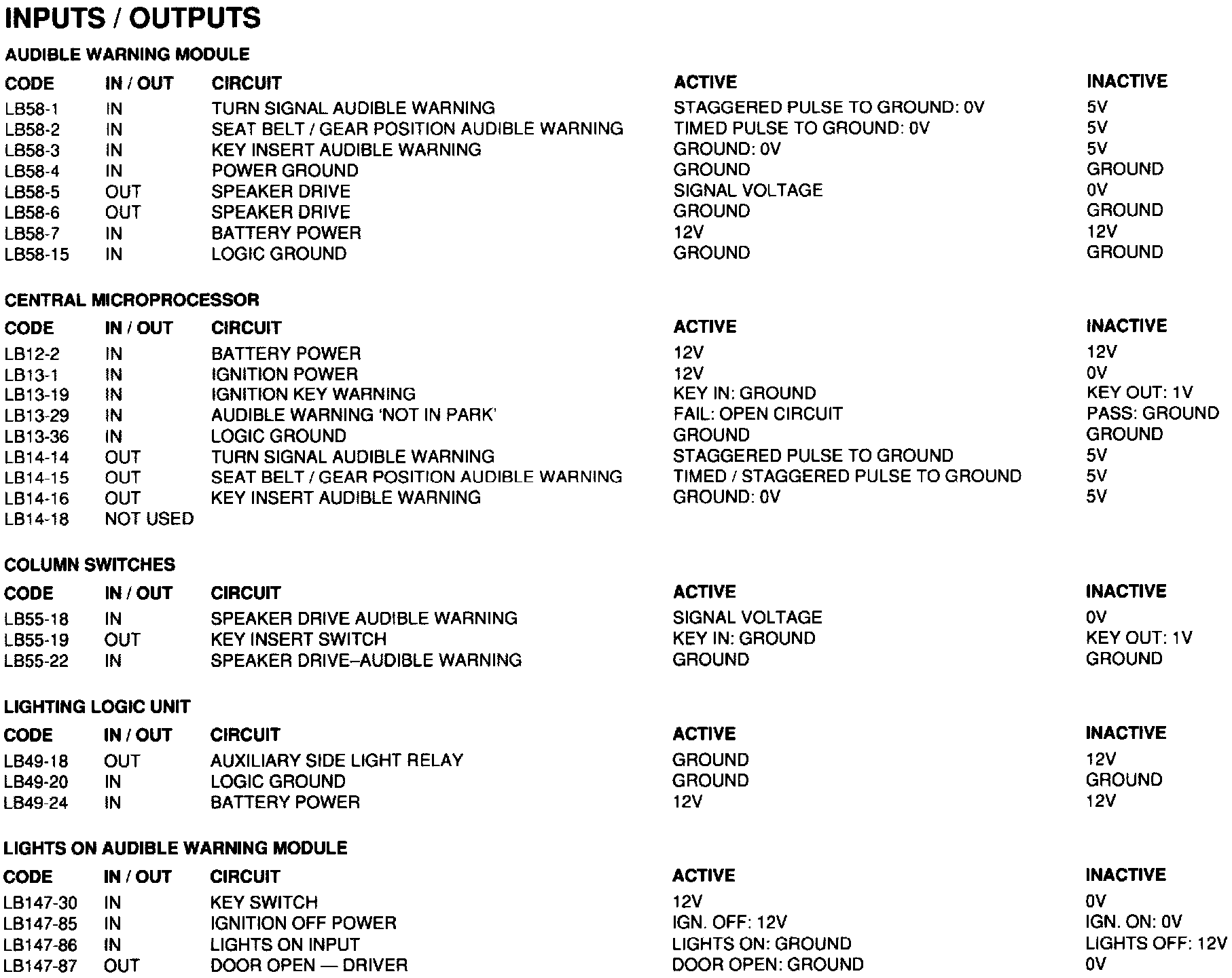 Audible Warnings - Components, Connectors, & Inputs/Outputs: