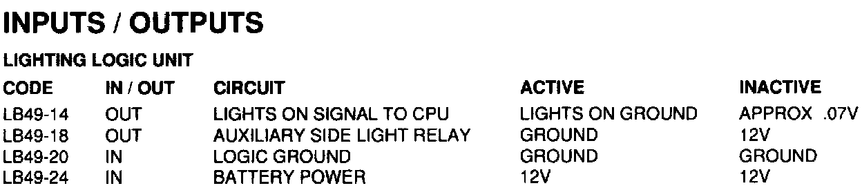 Side & Tail Lights - Components, Connectors, Grounds, & Inputs/Outputs: