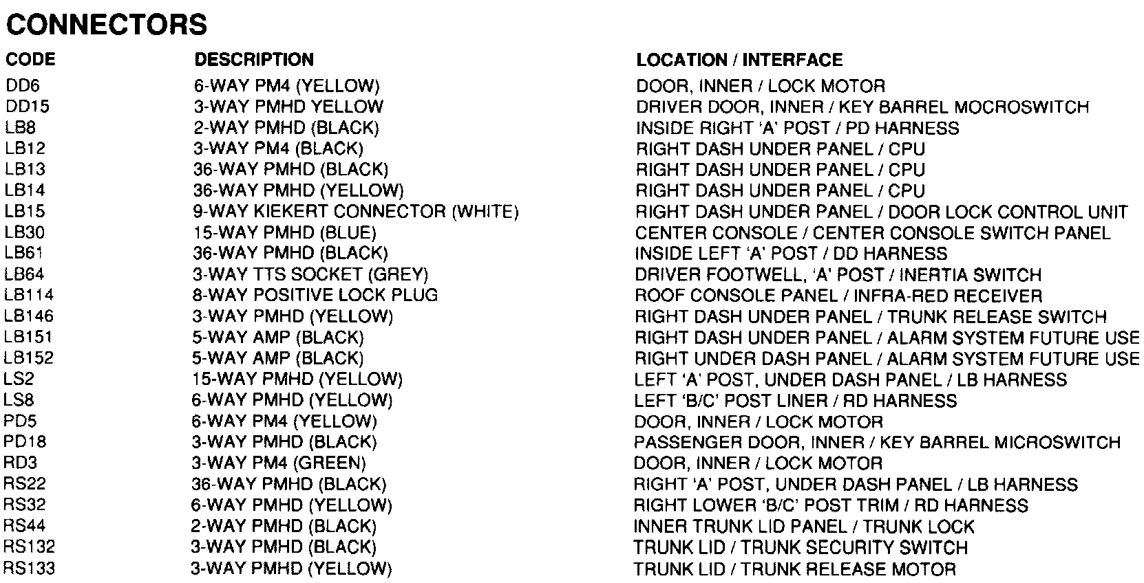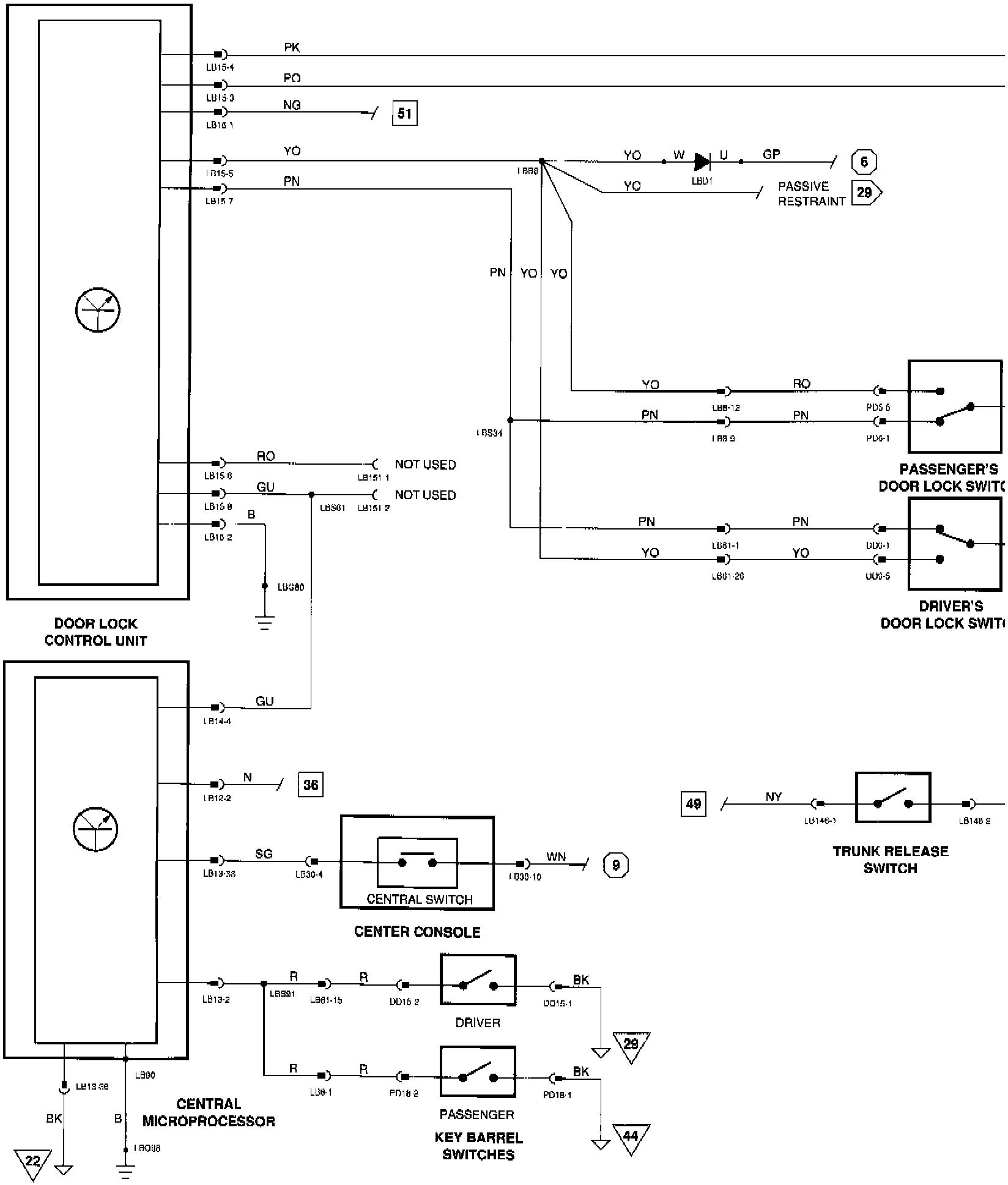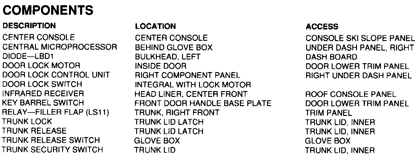 Central Locking - Components, Connectors, Grounds, & Inputs/Outputs: