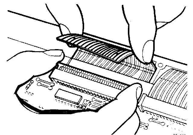 Carefully release the flexible printed circuit ribbon-ends from edge-connectors, by squeezeing grips between thumb and forefinger while sliding out connector-latch (Fig.1).