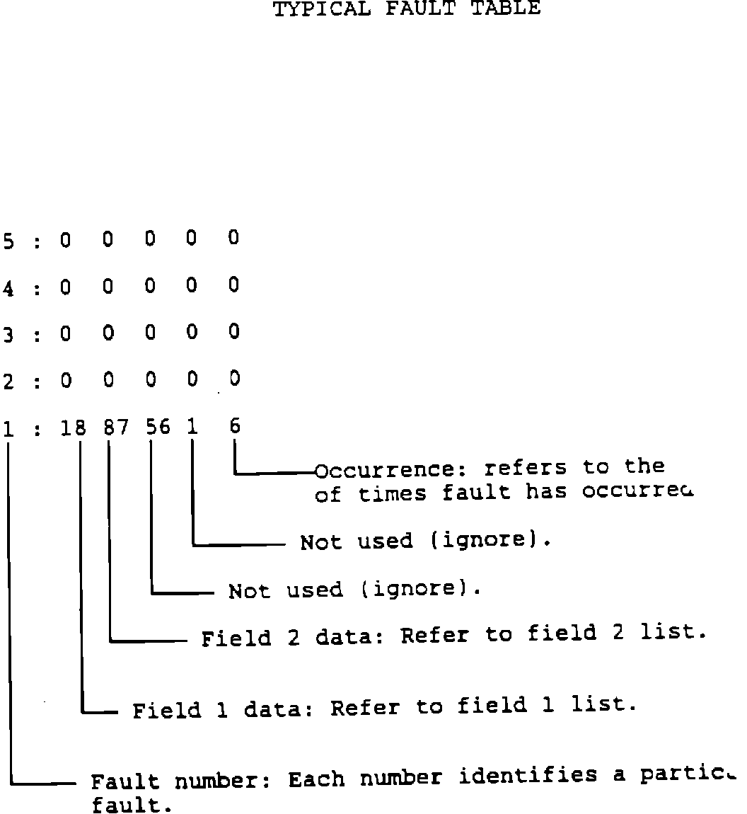 TYPICAL FAULT TABLE: