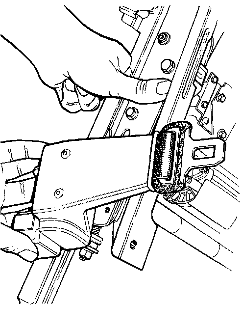 Fit and align a new buckle to the seat runner. Fit the passive inertia reel assembly to the seat runner, ensure that the reel bracket locates on the peg.