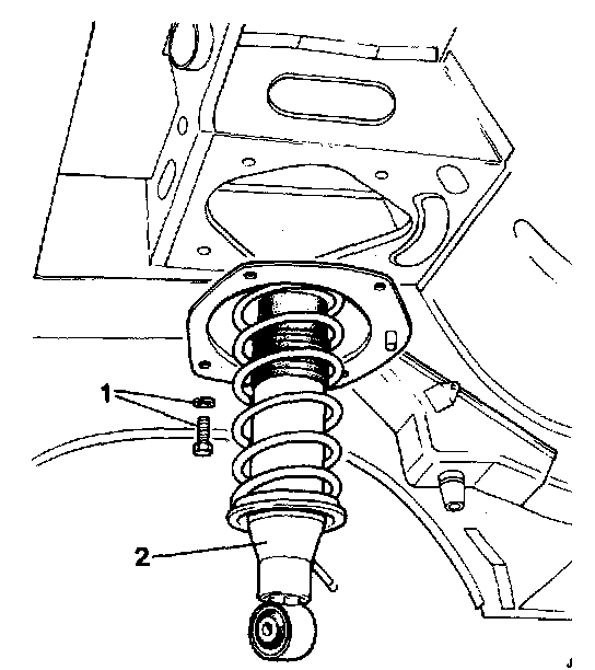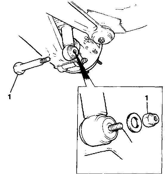 - Remove the shock absorber to body securing bolts (1) front inner first.
