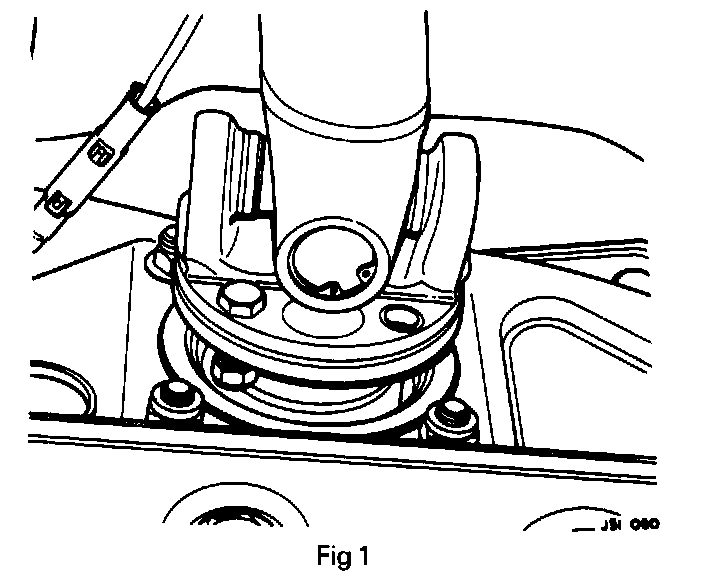 - Remove the propshaft to drive flange securing bolts (Fig 1).