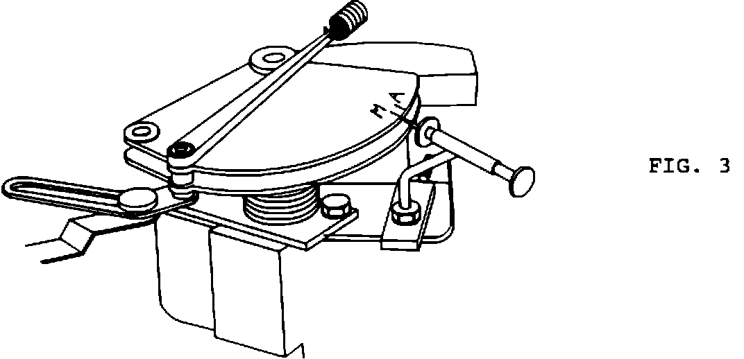 3. Turn the bellcrank to "Wide Open Throttle" and move the pointer back towards the bellcrank, (Fig. 3). The pointer MUST align with the "M" mark.