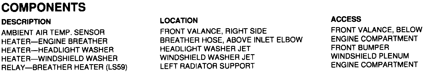 Heaters: W/S Washer, H/L Washer, Engine Breather - Components, Connectors, & Grounds: