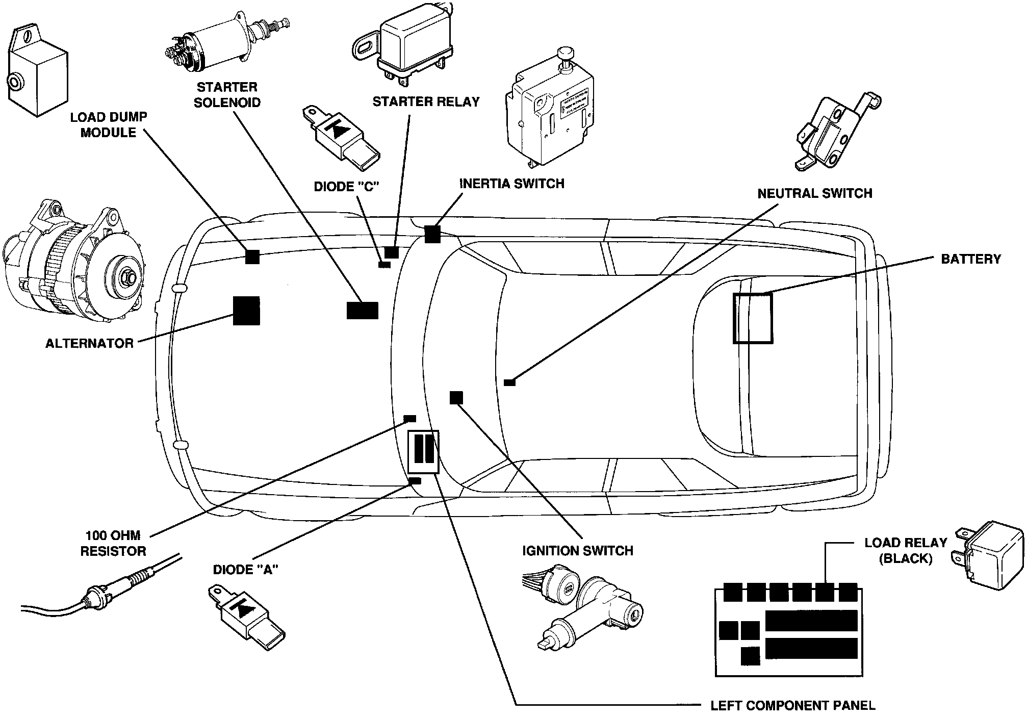 Battery; Starter; Alternator: