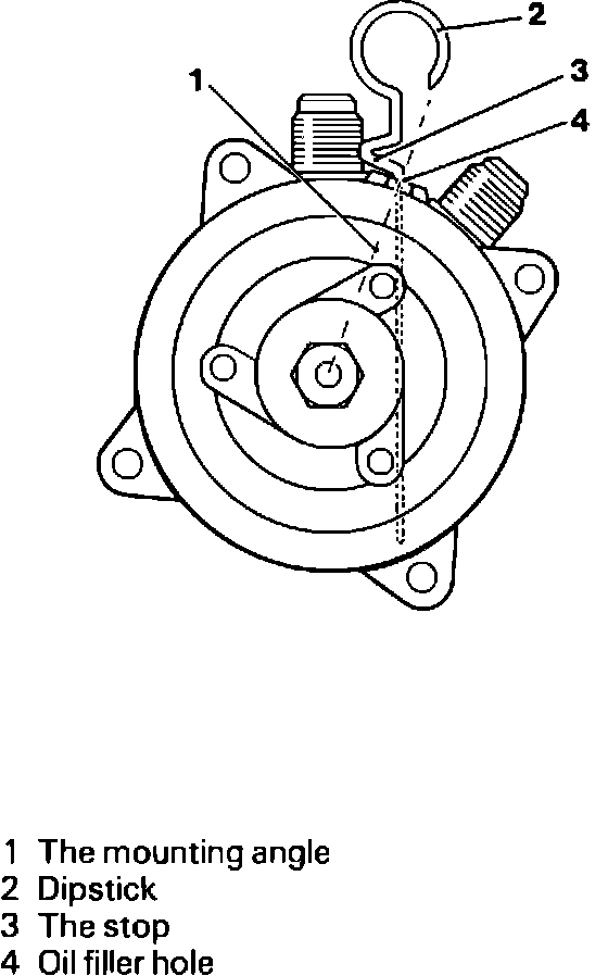 Fig. 2 Compressor Mounting Angle & Dipstick. Sanden Compressor: