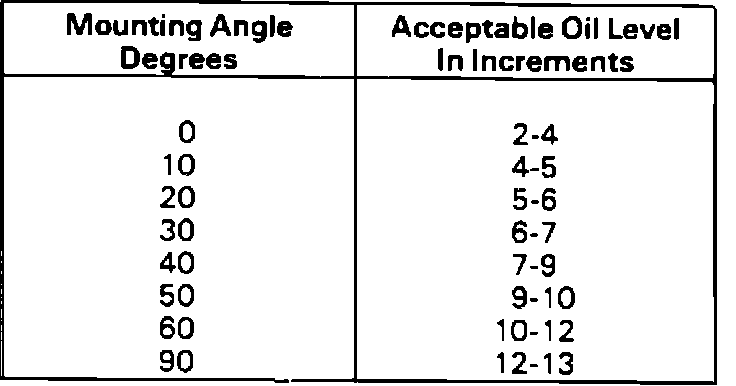 5. Refer to Fig. 3 for correct oil level in relation to corresponding mounting angle of compressor.