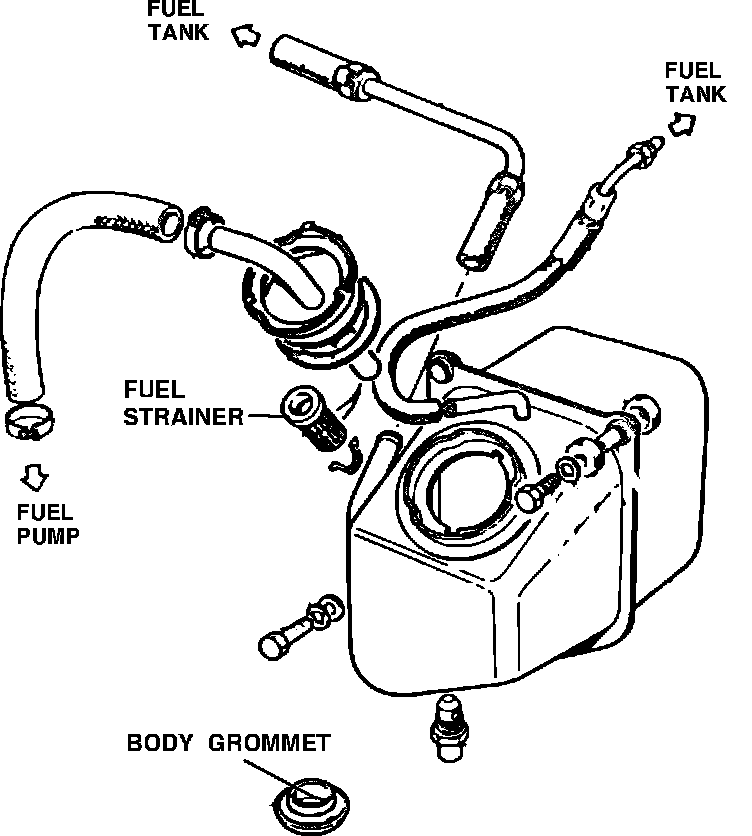 Sump tank is located below battery. It contains fuel pickup pipe and fuel strainer.