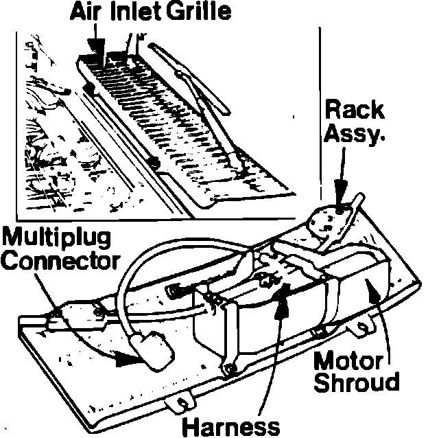 8. Invert grille-motor assembly again, then remove motor and drive rack assembly.
