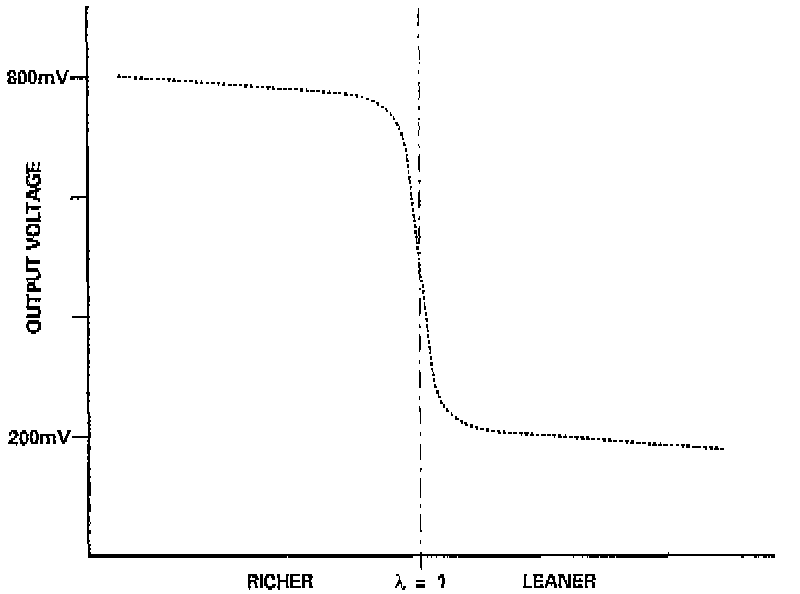 NOTE: The oxygen sensor voltage switches abruptly at an air/fuel ratio of 14.7:1 (Lambda = 11).