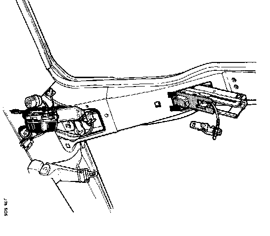 Remove the B post upper and lower trim pads. Remove the cantrail crash roll.