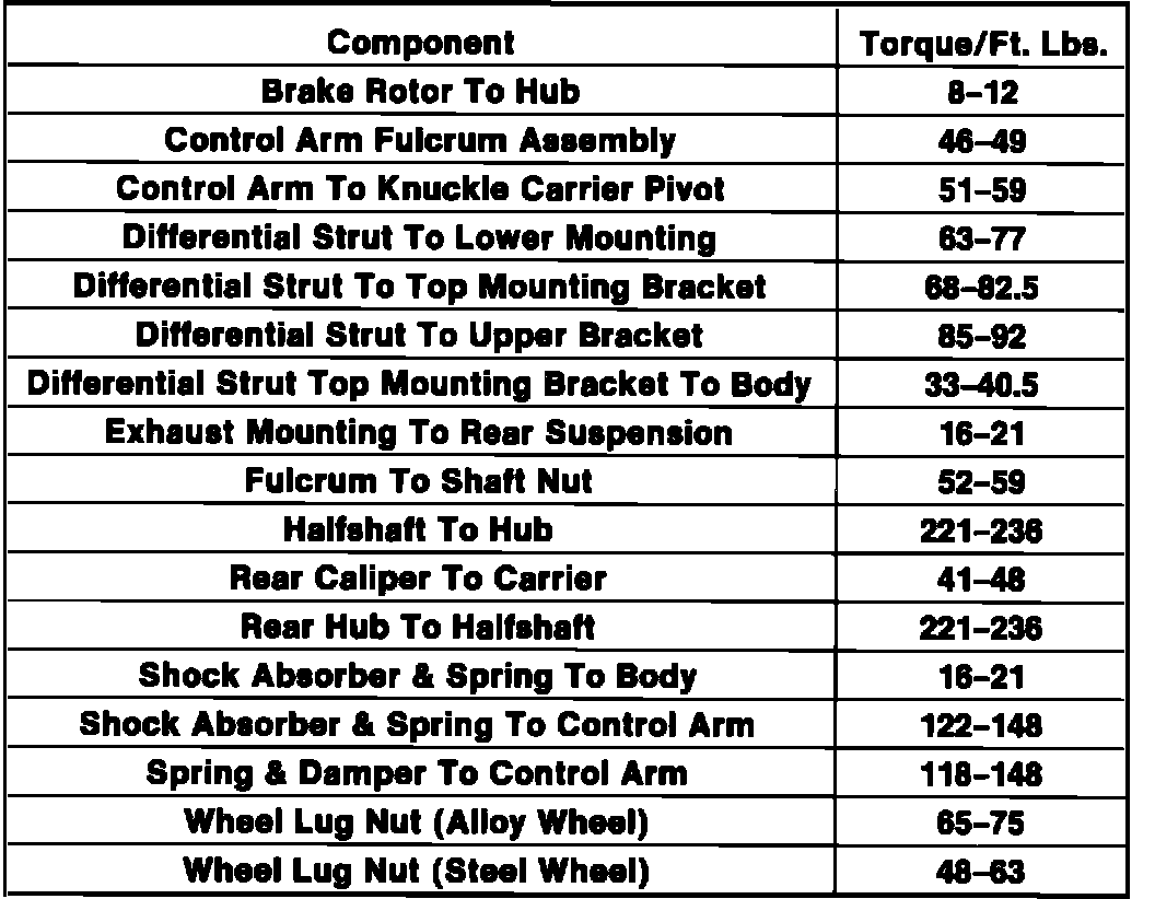 Torque Specifications, Rear