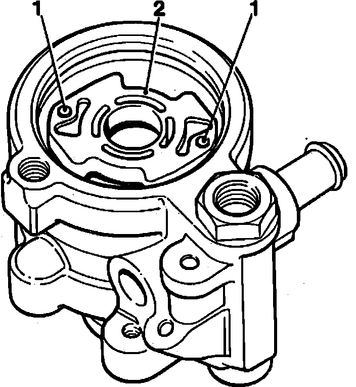 5. Install vanes into slots in rotor with radial edges outermost. Lightly smear new pressure plate O-ring seal with petroleum jelly and insert in groove of pump housing.